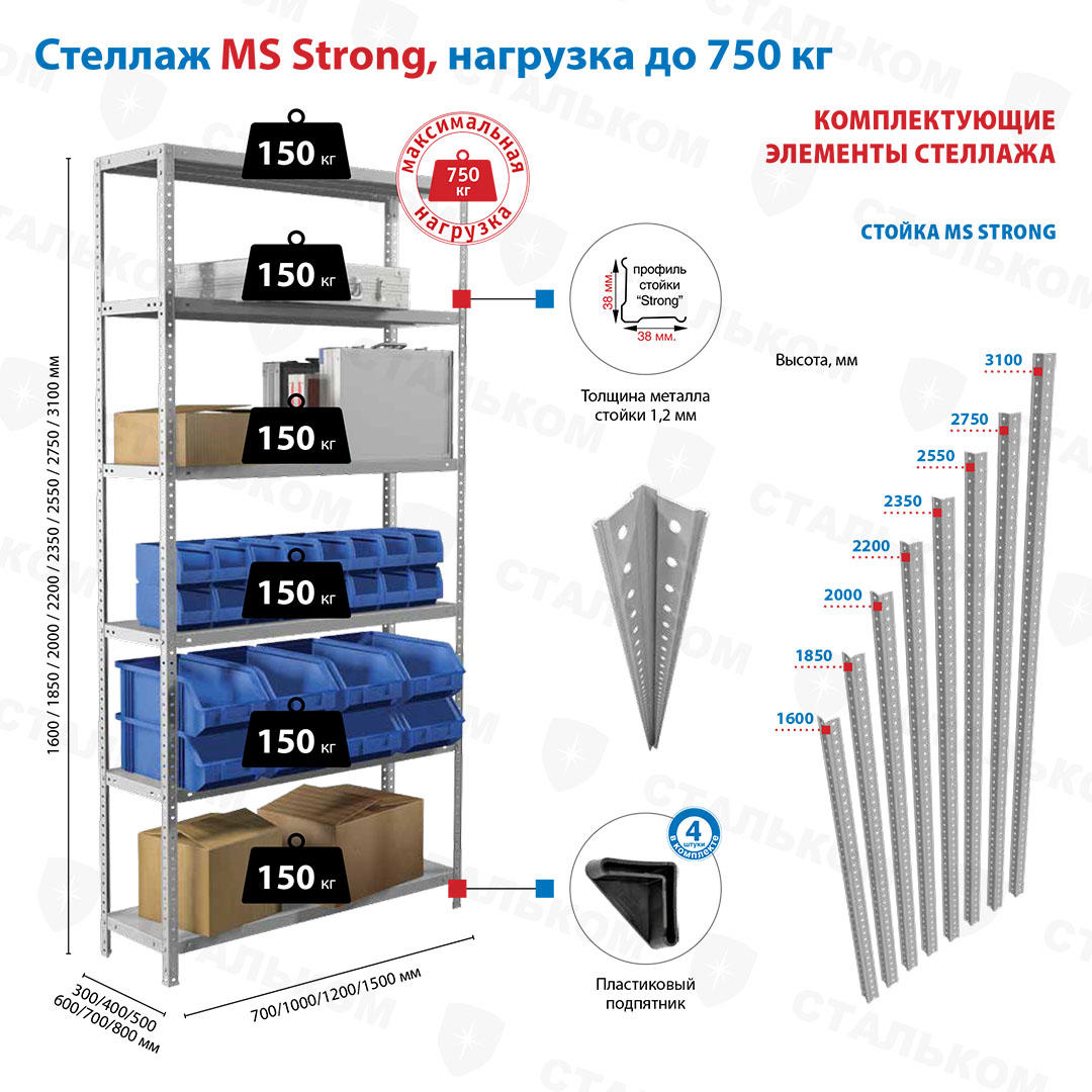 Купить стеллаж MS Strong 2750х1200х400, 6 полок в Бугульме с доставкой