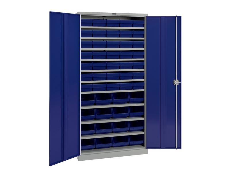 Предназначен для хранения инструментов, слесарных приспособлений и других изделий, инструментов на предприятиях, в мастерских и автосервисах. Шкаф оборудован пластиковыми ящиками Практик 400х185х100 (35 штук) и 400x230x150 (16 штук) с кармашком для подписи. Данный комплект предназначен для организации хранения крепежа, инструмента, деталей и др.
